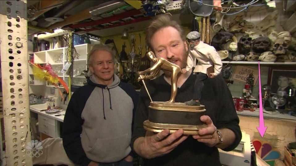 With no writers, Conan O'Brien is being forced to do things on camera such as going to the NBC prop department and breaking valuable artifacts. On Friday night's show, while he was examining an Oscar getting a prostate exam, I couldn't help but notice one of the items on a shelf behind him.